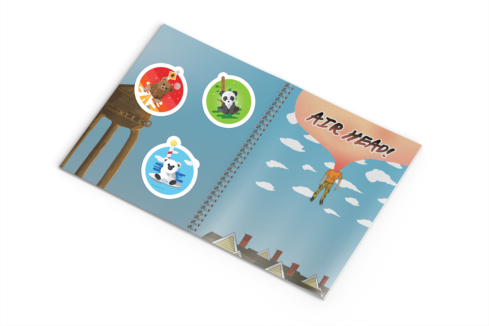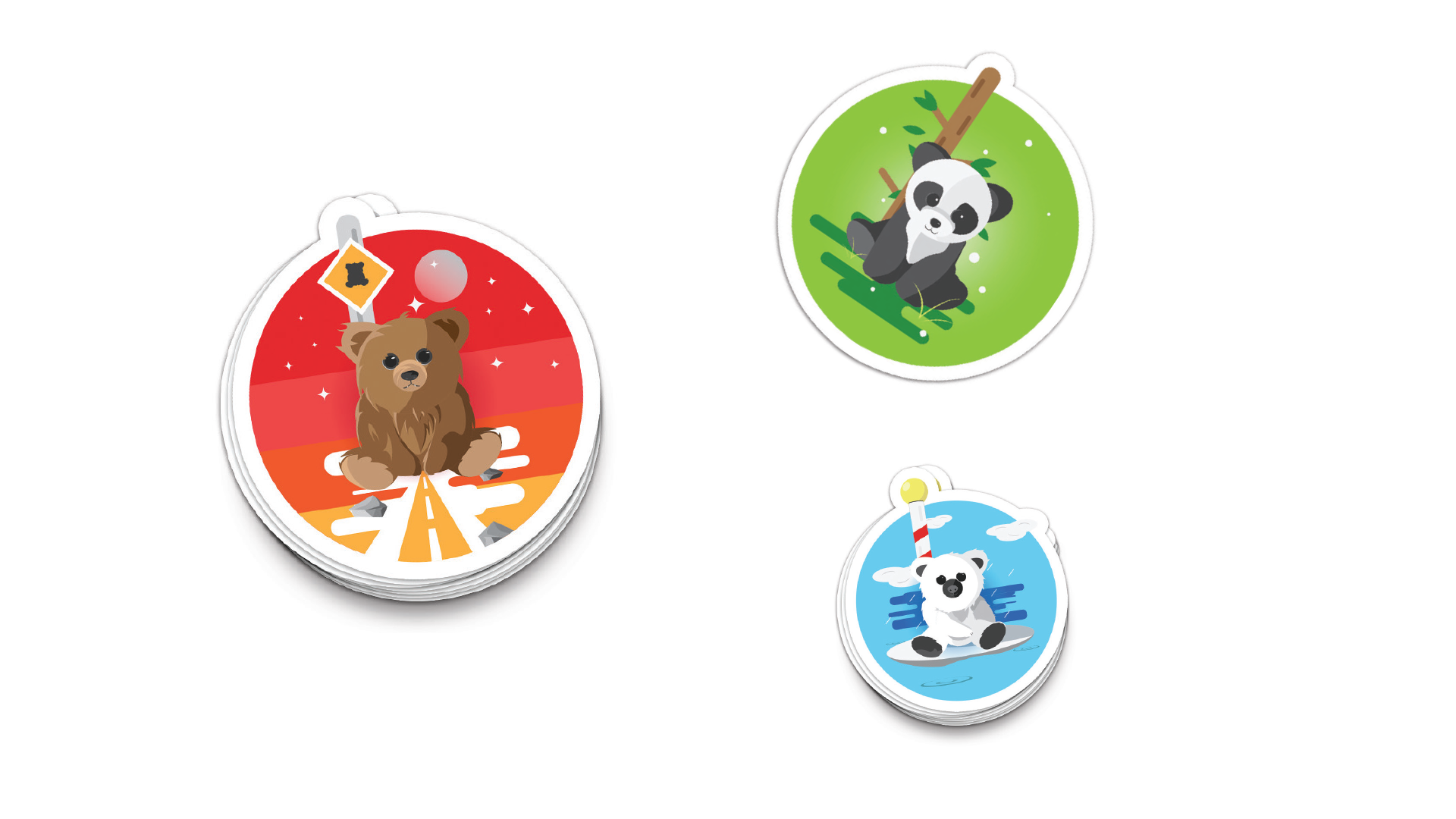 Original Illustrations of 3 bears, used as stickers and pins. The concept is to target parents with small children to buy these cute stickers and pins to use them on school supplies such as backpacks and notebooks.