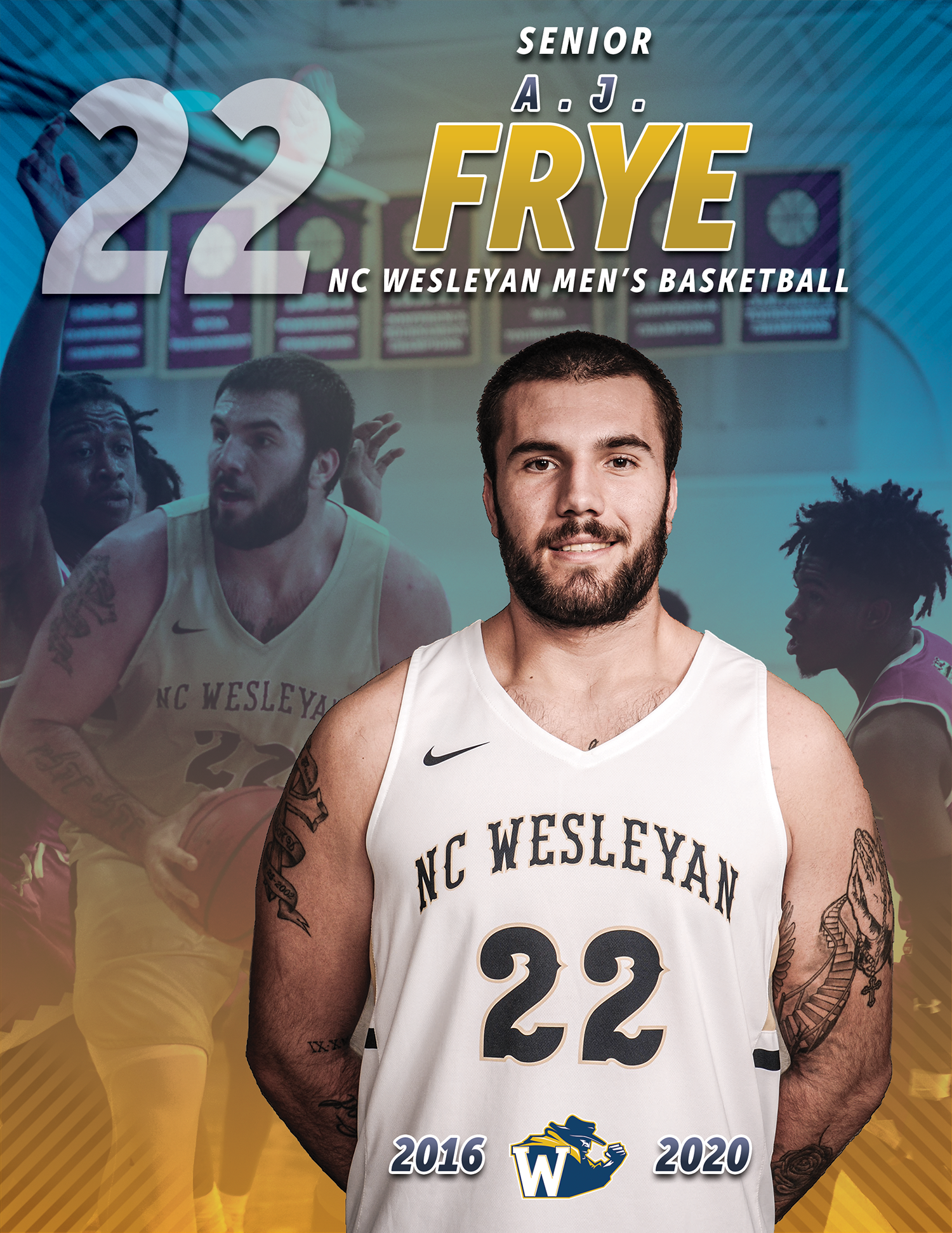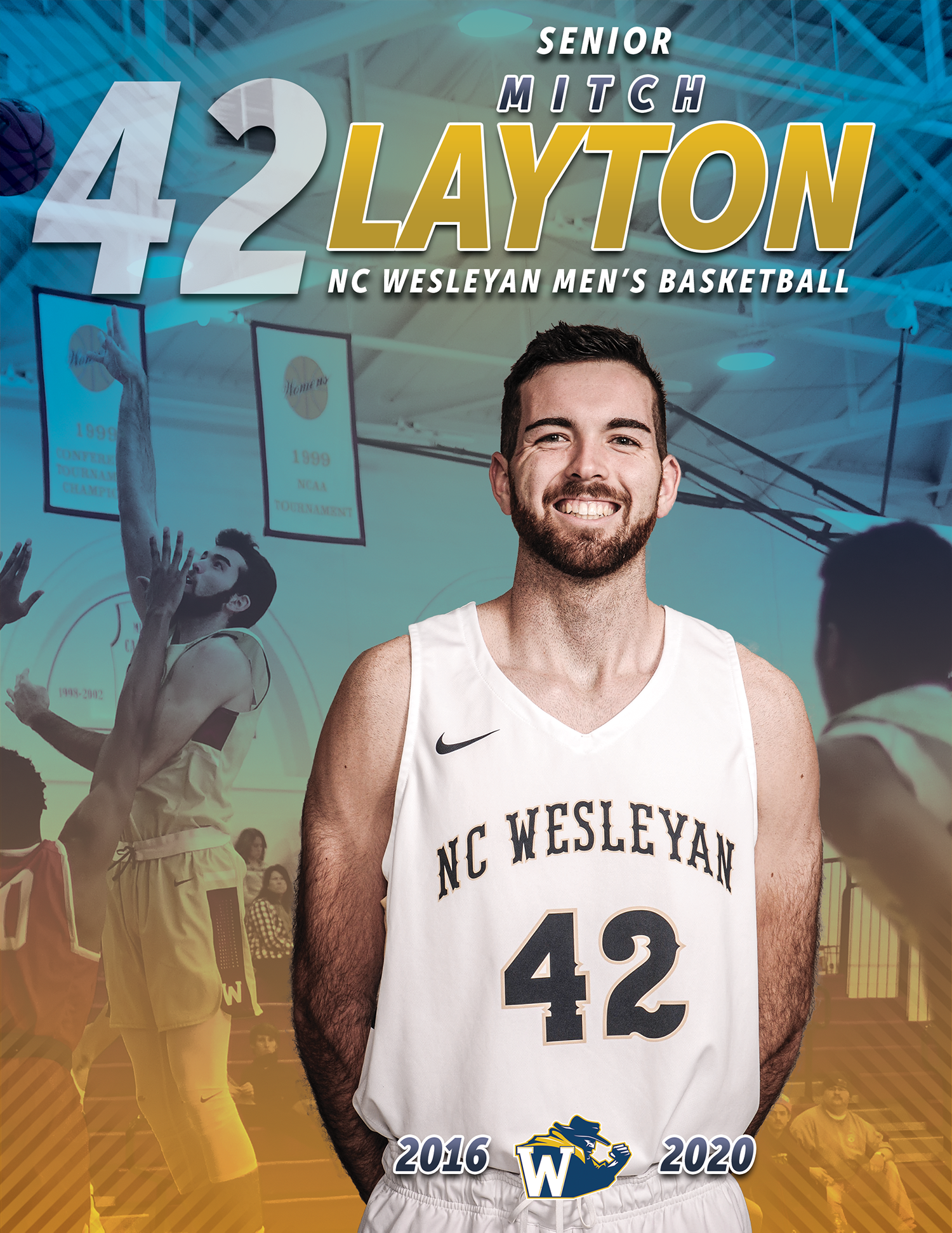 While interning in the athletic department at North Carolina Wesleyan College, I was asked to design senior portraits for the mens basketball team.